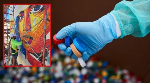 Powstał rekordowy mural z plastikowych nakrętek. Czy to jest eko?
