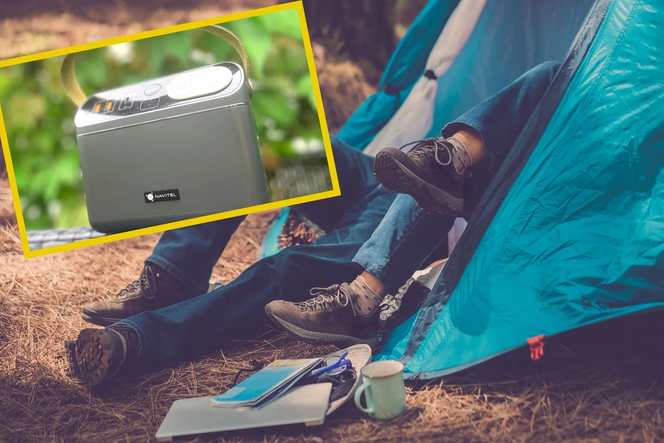 Gdzie można najlepiej sprawdzić stację ładującą? Oczywiście w terenie. Sezon wakacyjny był w pełni, dlatego korzystając z zaplanowanego wyjazdu na kajaki, zabrałem urządzenie ze sobą. Kiedy wpada się na pomysł doświetlania lampami samochodowymi pola namiotowego w nocy, efekt może być tylko jeden. Mając trzy auta teoretycznie sprawa wydaje się łatwa, jednak problem zaczyna się, kiedy nie znajduje się kabli rozruchowych. Zaczęliśmy więc kombinować ze stacją ładowania, bo przecież "tam prąd jest". Sprawdzając na pudełku moc urządzenia, szybko zorientowaliśmy się, że w środku znajduje się... zestaw kabli do rozruchu.