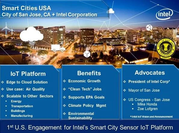 Miasto San José i Intel Corporation współpracują w ramach partnerstwa publiczno-prywatnego nad rozwojem miejskiej inicjatywy „Green Vision”. Projekt znany jako Smart Cities USA ma pomóc w stymulacji wzrostu gospodarczego w San José, umożliwić stworzenie 25 000 miejsc pracy w czystych technologiach, stworzyć zrównoważone środowisko i poprawić jakość życia mieszkańców.