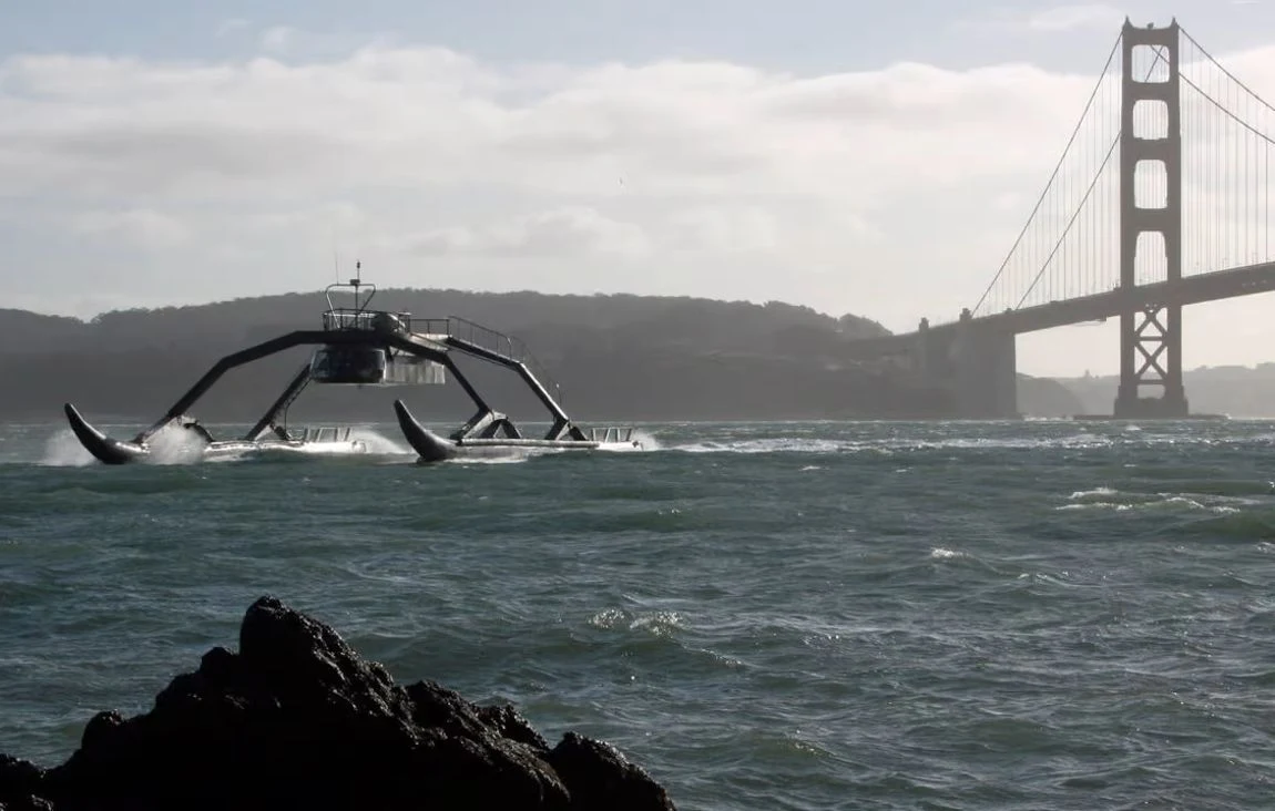 O co chodzi z tym Wave-Adaptive Modular Vessel? To ultralekkie superzwrotne katamarany z kadłubami osadzonymi na sprytnych rozkładanych "pajęczych" nogach, które wykorzystują sprężyny, amortyzatory i przeguby kulowe do poruszania się wraz z falami, co pomaga stabilizować konstrukcję podczas pochylania i kołysania - oznacza to, że świetnie sprawdzają się w warunkach morskich, gdzie inne jednostki o podobnym rozmiarze nie mają zastosowania.