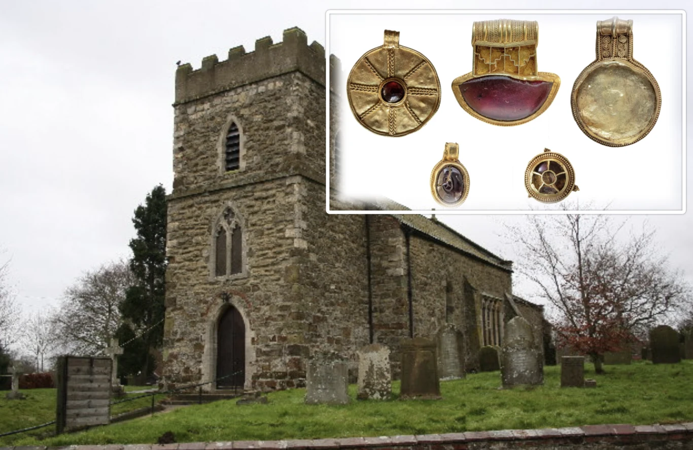 W angielskim hrabstwie Lincolnshire, a konkretniej na zboczu wzgórza w wiosce Donington on Bain, ok. 200 km na północ od Londynu, odkryto niezwykłą kolekcję biżuterii, która może pochodzić z ofiary rytualnej. Skarb znaleziony przez detektorystów datowany jest na VII wiek i liczy cztery złote wisiorki oraz fragment złotej broszy z granatem.