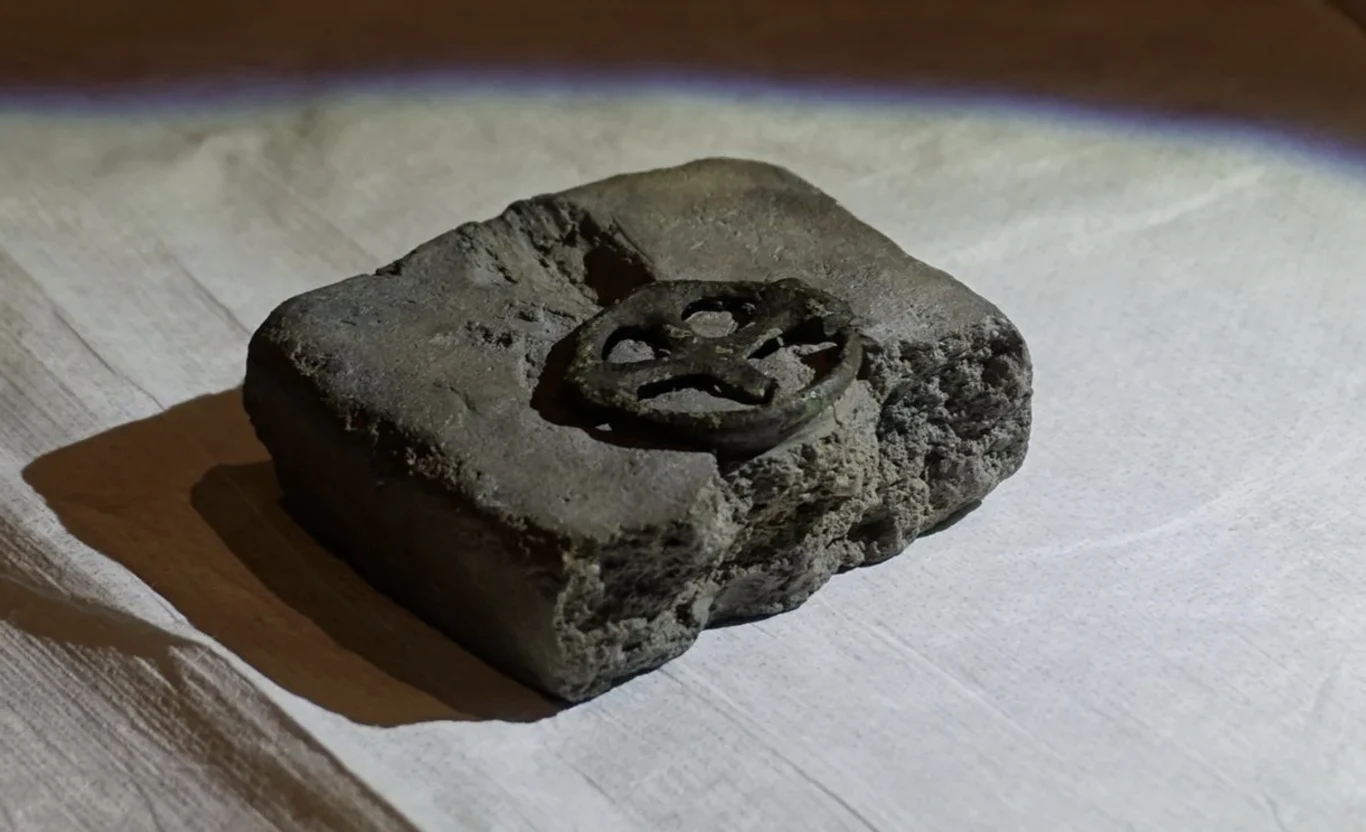 Wraz z nim znaleziono monety, fragmenty częściowo pozłacanej biżuterii i żelazne elementy uzbrojenia, co zdaniem badaczy sugeruje, że miejsce to mogło być ważnym punktem kontaktu kulturowego między wczesnochrześcijańskim Zachodem a słowiańskim Wschodem.