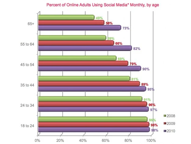 Niemal wszyscy Amerykanie w wieku 18-44 lata, którzy mają dostęp do internetu, korzystają z witryn społecznościowych. Starsi internauci nie są pod tym względem wiele gorsi.