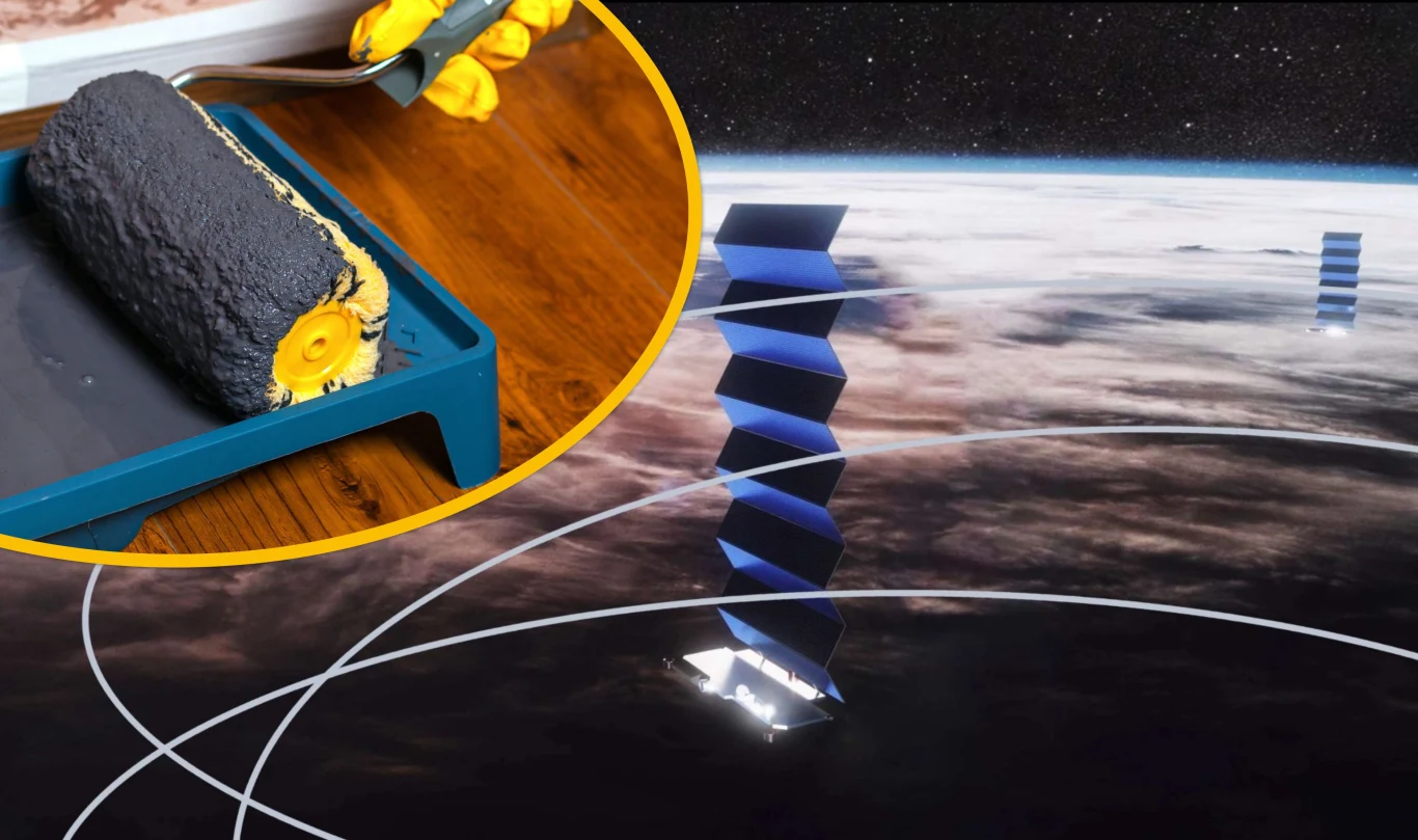 Mowa o ulepszonej lustrzanej folii umieszczanej na satelitach, która rozpraszać ma większość odbitego światła słonecznego, więc będzie ono mniej skoncentrowane i tym samym mniej widoczne z Ziemi - zmniejszyć ma jasność odbicia ponad dziesięciokrotnie w porównaniu do obecnej wersji. A jeśli chodzi o elementy satelitów, których nie można pokryć folią, zostaną dosłownie... pomalowane na czarno, bo Starlink opracować miał czarną farbę o niskim współczynniku odbicia, 5 razy skuteczniejszą niż wykorzystywane obecnie kosmiczne farby.