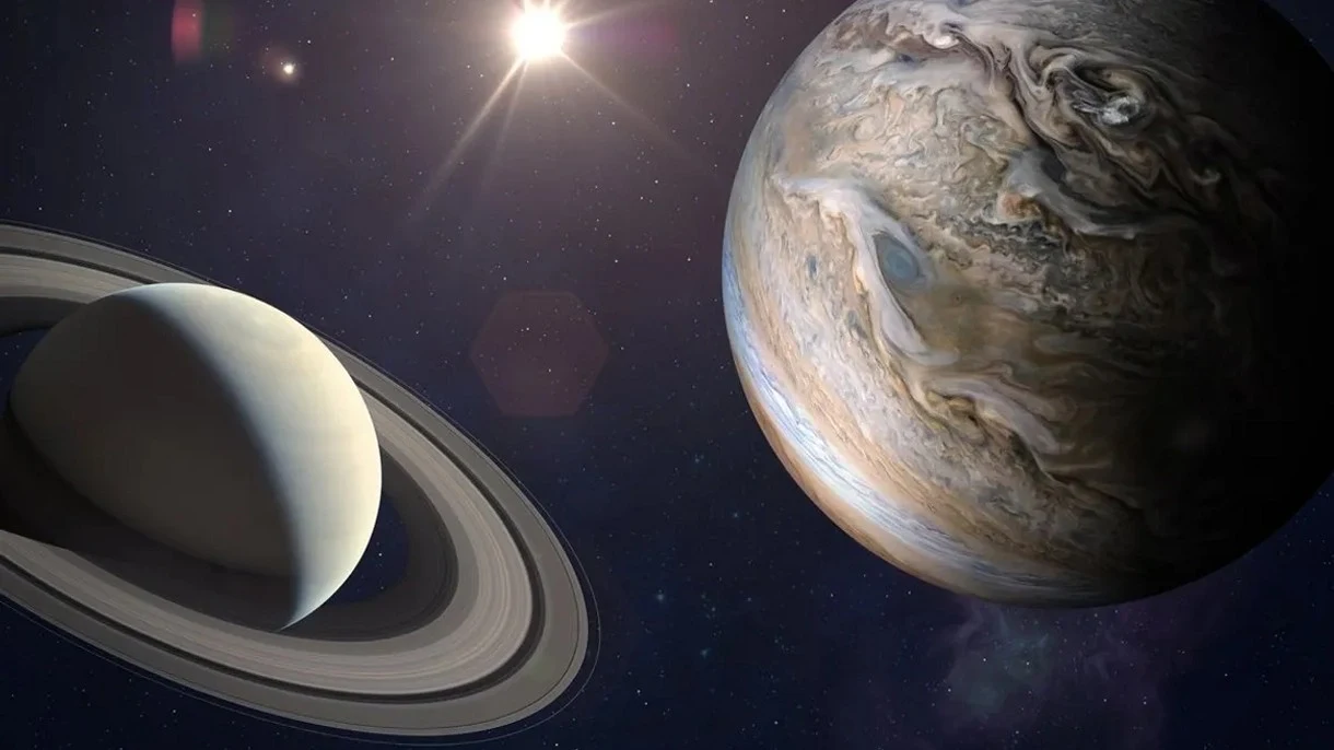 Zbliżenie Jowisza i Saturna w obiektywie sondy znajdującej się na orbicie Księżyca