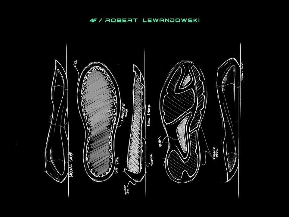 W pierwszym modelu butów 4F×RL9 zalazły się także elementy ze świata profesjonalnego sportu - linie na spodzie podeszwy nawiązują do rozmieszczenia korków w profesjonalnych butach piłkarskich. Z myślą o wygodzie fanów Roberta Lewandowskiego, środkowa podeszwa została wykonana z komfortowej pianki X-PERIENCE, która zapewnia amortyzację typową dla buta sportowego.