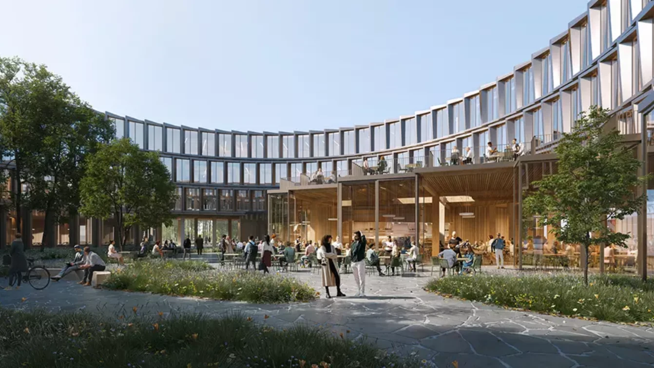 Naszą wizją jest stworzenie dynamicznej przestrzeni do pracy w sercu natury - miejsca, w którym kwitnie dobre samopoczucie, współpraca i wiedza. To nie jest zwykłe biuro. Okrągły projekt służy jako symboliczny znacznik, tworząc nowe centrum kulturalne dla całego kampusu w dawnym sztywnym, ortogonalnym parku badawczym.
