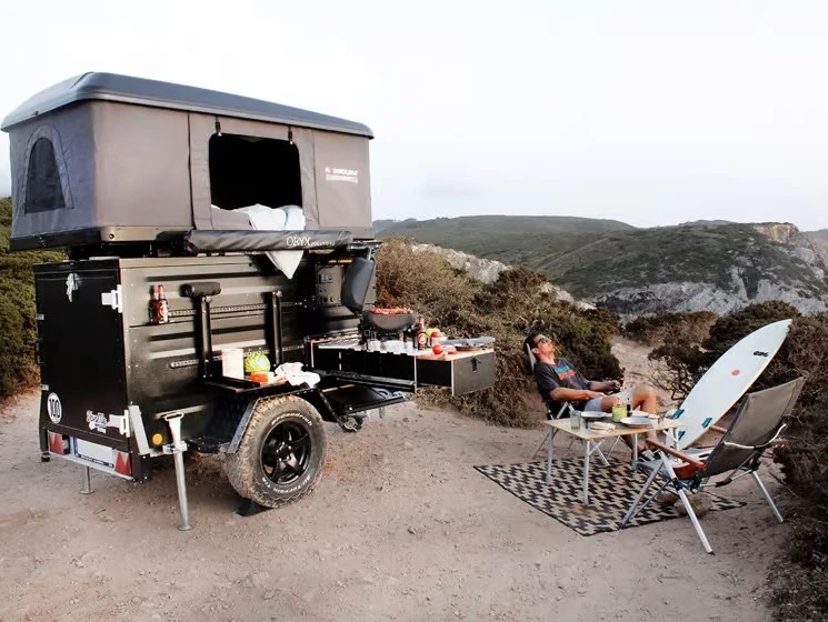 Wystarczy kilka minut, aby zamienić ją w mały domek na kółkach. Wysuwany moduł kuchenny pozwala na przygotowanie obiadu na świeżym powietrzu. Wytrzymały blat kuchenny z hartowanej stali zapewnia znakomite miejsce do przygotowania jedzenia. W zestawie Bobo jest grill, kuchenka, a nawet lodówka. Nabywca przyczepy będzie musiał jedynie zakupić własny zestaw garnków, patelni i innych przedmiotów niezbędnych w kuchni.