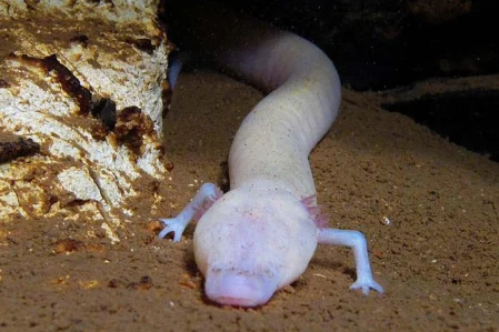 Salamandra, a właściwie odmieniec jaskiniowy, może żyć nawet 100 lat. Płazy te można znaleźć w podziemnych jaskiniach w Europie południowej. Mogą latami nic nie jeść, są ślepie i żyją w całkowitych ciemnościach.