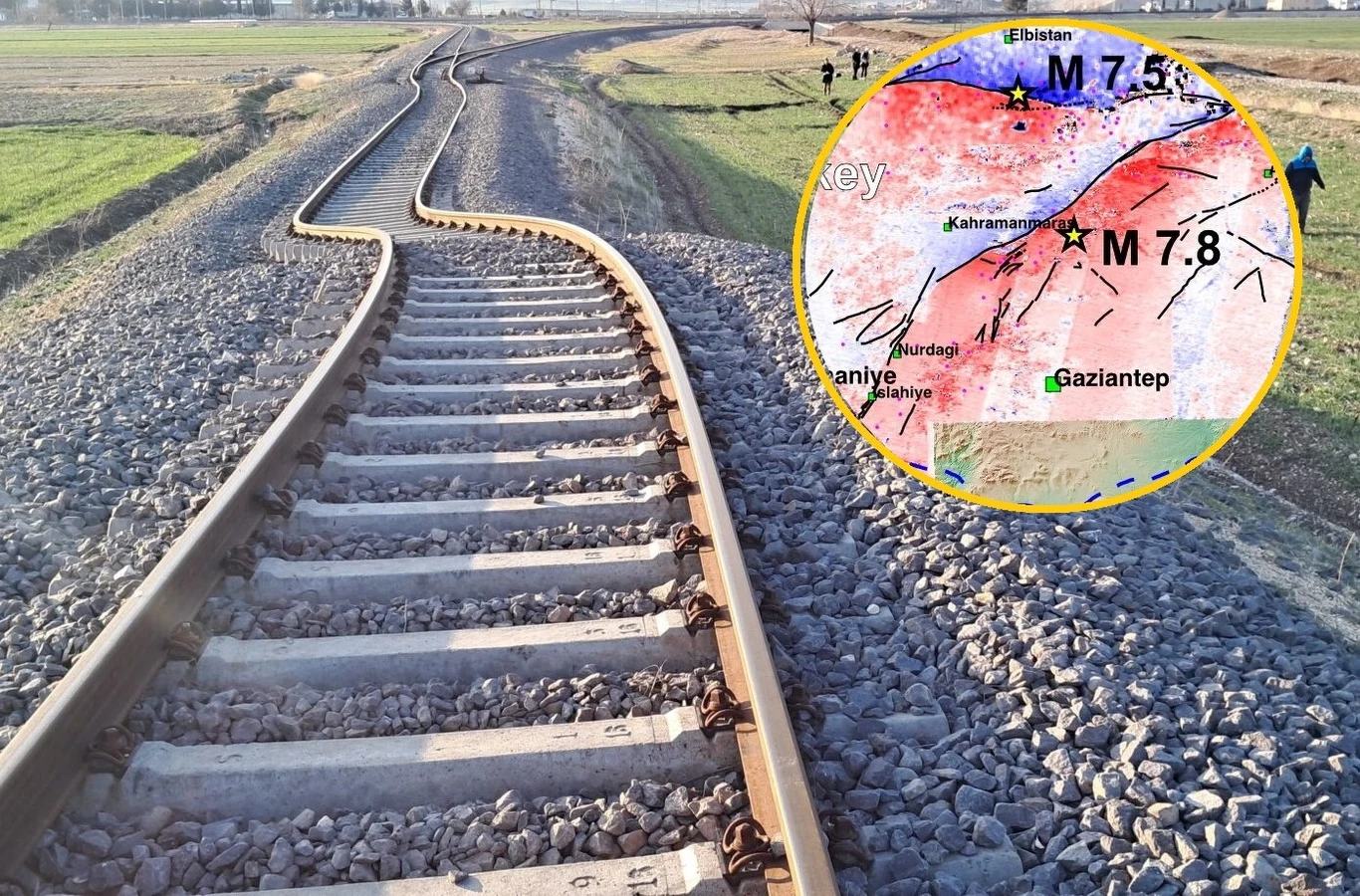 Według naukowców uskok powstał w wyniki pierwszego z dwóch potężnych wstrząsów o sile 7,8 stopnia, które miało miejsce 6 lutego o godzinie 4:17 czasu lokalnego. Drugie pęknięcie o długości 125 kilometrów pojawiło się po drugim trzęsieniu ziemi o sile 7,5 w skali Richtera, które miało miejsce ok. 9 godzin później.Przesunięcie ziemi w wyniku trzęsienia ziemi dobrze pokazują tory kolejowe w Turcji na terenie, gdzie zatrzęsła się ziemia.