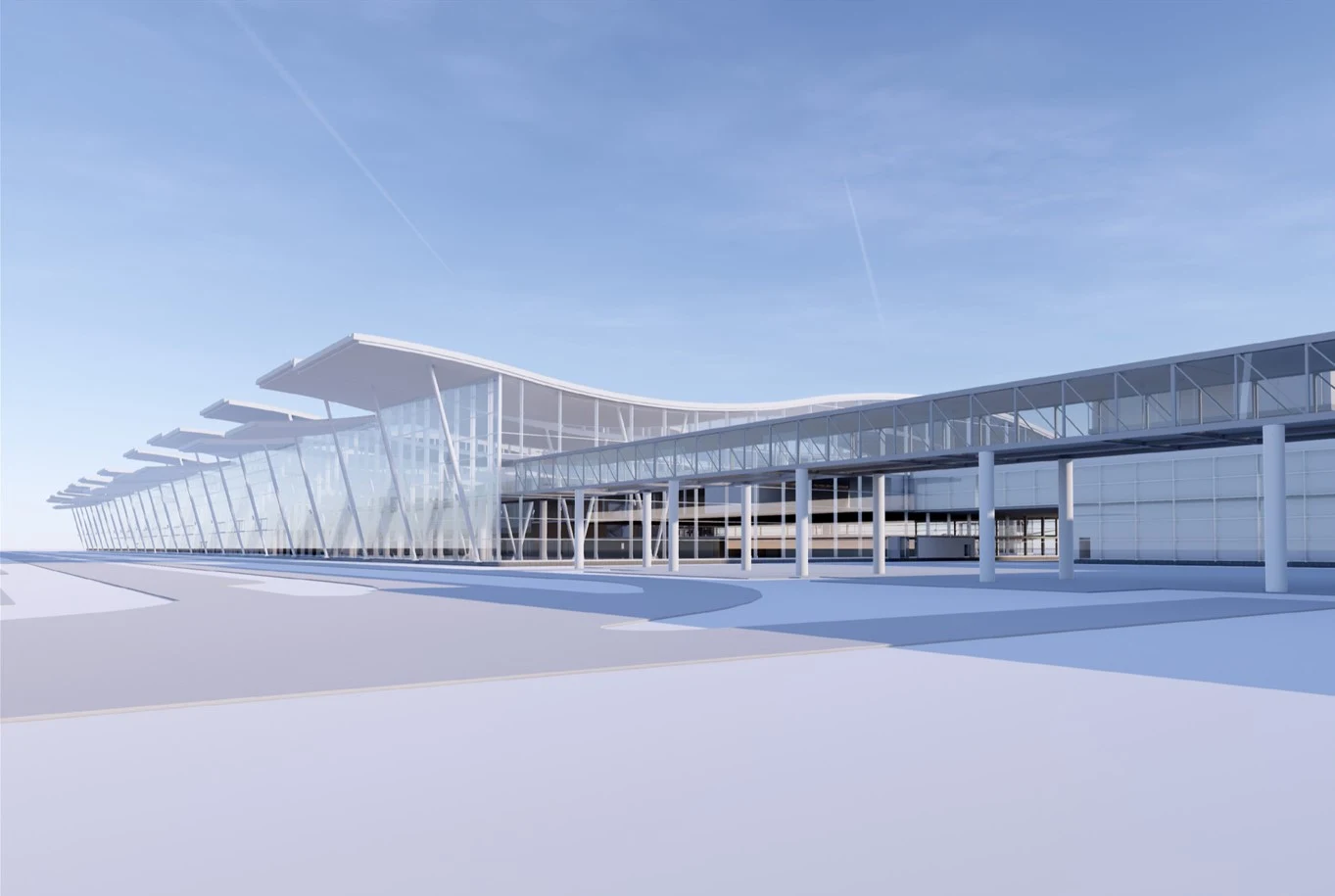 Na lotnisku ma powstać pirs o długości 165 metrów (dwukondygnacyjny budynek z czterema dodatkowymi mostami wraz z czterema rękawami).