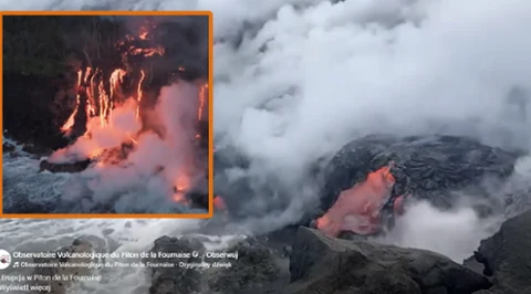 Lawa spotyka ocean po 19 latach. Spektakularne zjawisko na wyspie Reunion