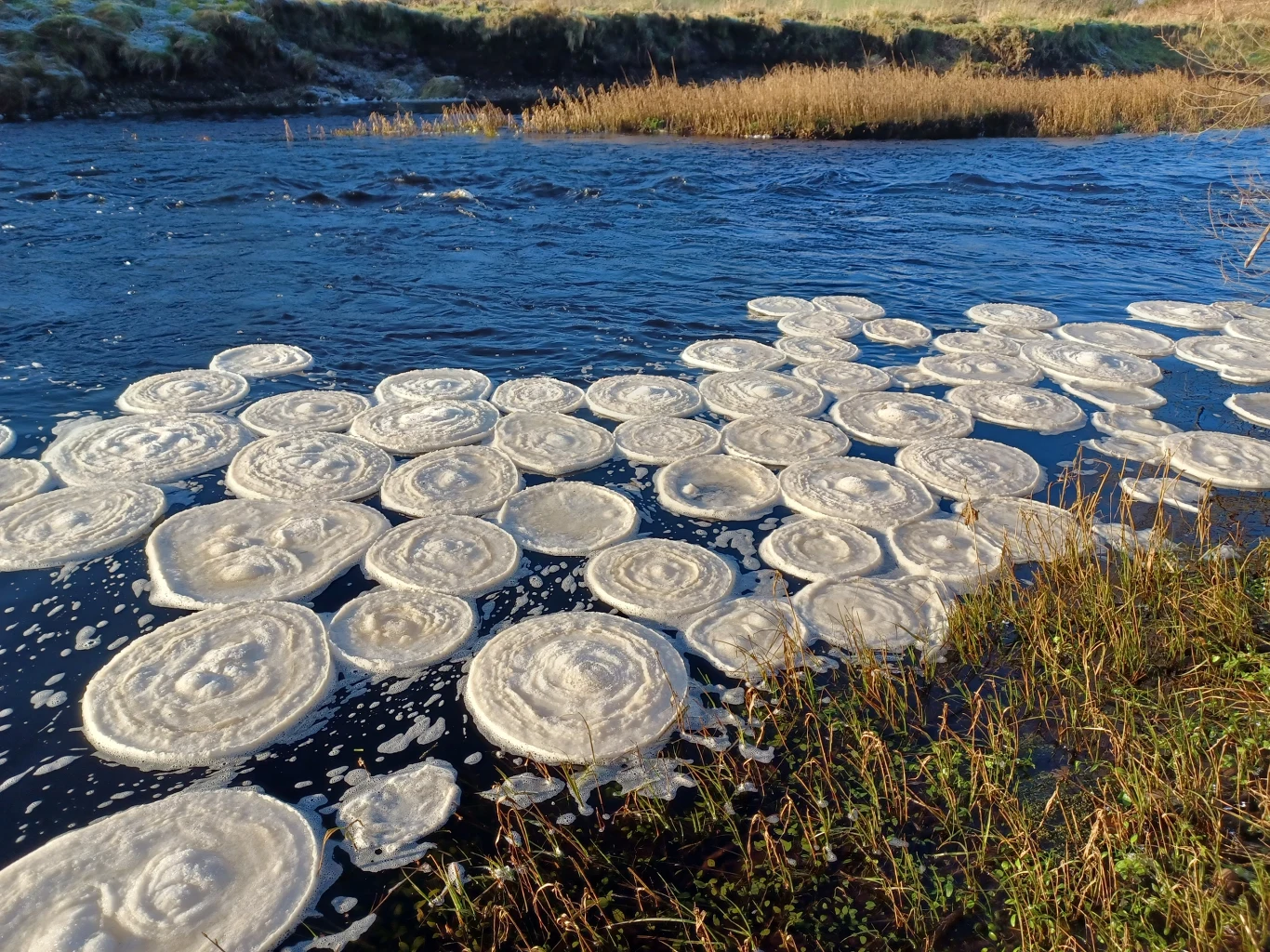 Po tym, jak w Wielkiej Brytanii zanotowano spadki temperatury, na powierzchni szkockiej rzeki zauważono kręgi błotnistego lodu, znane jako lodowe naleśniki (ang. ice pancakes), które unosiły się na powierzchni wody.