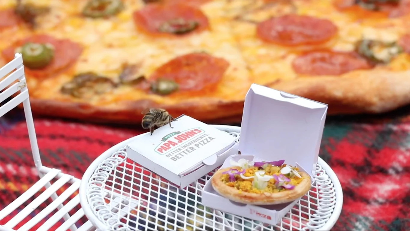 Co jedzą pszczoły? Wbrew temu, co twierdzą autorzy popularnej w pewnych kręgach youtube'owej piosenki nasi mali skrzydlaci przyjaciele wkrótce przerzucą się na... pizzę. Sieć Papa John's postanowiła w dość nietypowy sposób zasygnalizować, że tym pożytecznym owadom, którym grozi wyginięcie, potrzebna jest nasza pomoc. Z tej okazji przygotowano dla nich pizzę, a właściwie to mierzącą 2,5 centymetra średnicy "beezzę". Jako dodatki na mikroskopijnym cieście posłużyły jedne z ulubionych "przysmaków" pszczół, czyli niezapominajki, pelargonie, rozmaryn lekarski i tymianek. Warto w tym miejscu wspomnieć, że za tę niecodzienną kompozycję smakową odpowiedzialny był firmowy szef kuchni Thom Whitchurch. Papa John's zadbała nawet o miniaturowe opakowania na pszczelą pizzę, w razie gdyby owady zdecydowały się wziąć ją na wynos...