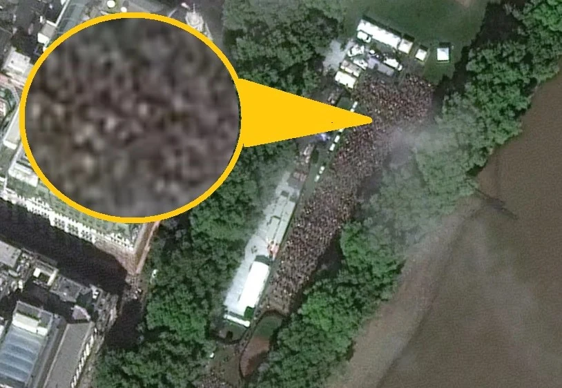 Zdjęcia zostały wykonane 17 września przez satelitę WorldView-3 obsługiwanego przez firmę satelitarną Maxar Technologies. Widać na nich nieprzebrane tłumy ludzi stojących w monstrualnej kolejce. Według policji miała ona 16 kilometrów długości i ciągnęła się wzdłuż słynnych londyńskich budowli jak Pałac Buckingham, Pałac Westminsterski czy brytyjski parlament.Na zdjęciach satelitarnych tłumy ludzi są widoczne jako ciemne plamy, które znajdują się w pobliżu miejsca wystawienia trumny z ciałem królowej.
