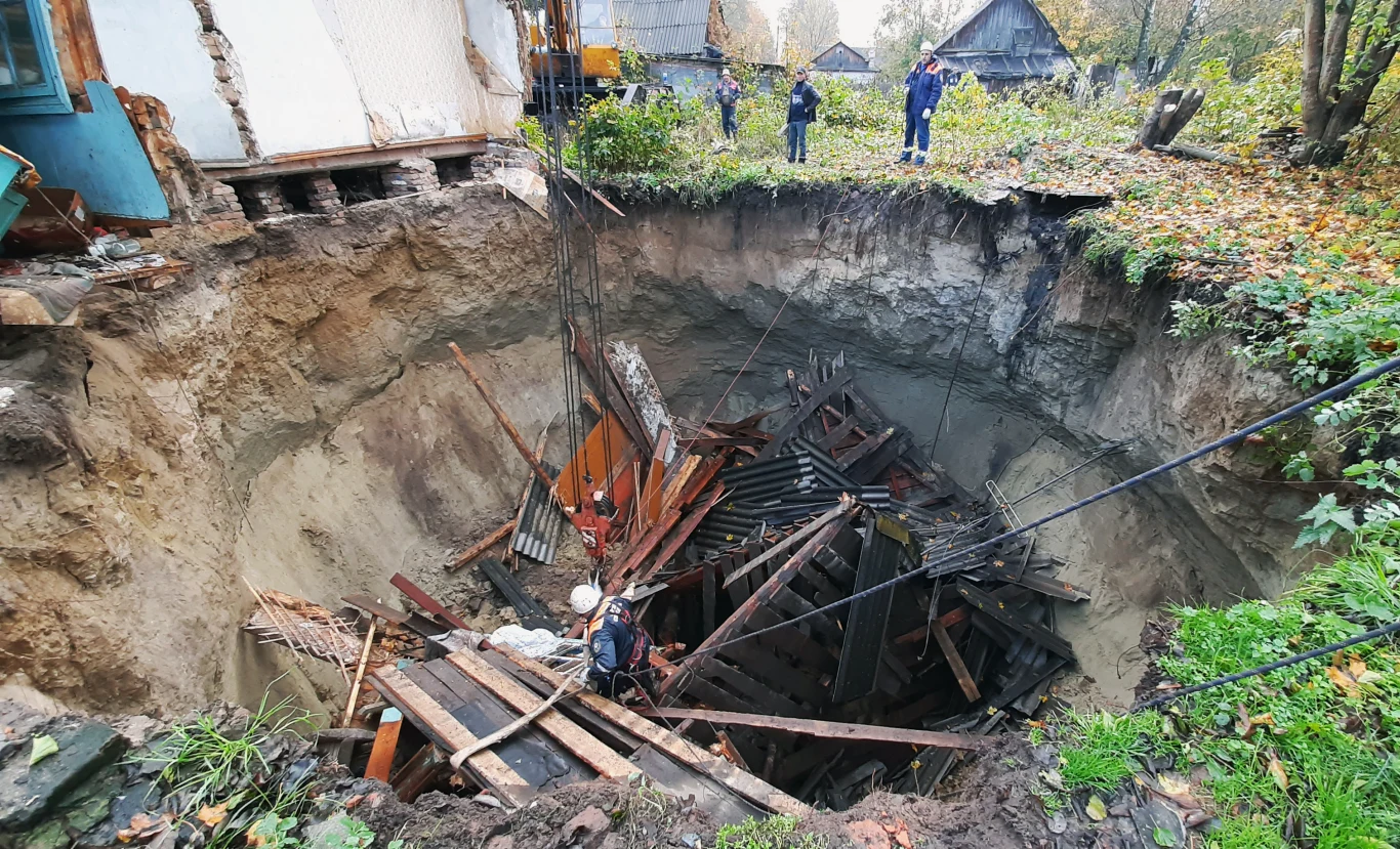 Zdradliwy grunt w Rosji. Dół pojawił się nagle i... wchłonął część domu