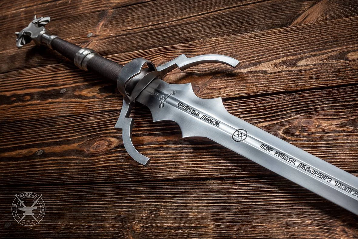 W prawdziwej walce z innym człowiekiem wiedźmiński miecz by się nie sprawdził. Trudno byłoby np. parować uderzenia przeciwnika. "Konstrukcja nawiązuje co prawda do klasycznych wzorców, według typologii historyka i ilustratora Ewarta Oakeshotta, ale trzeba pamiętać, że wiedźmini walczą głównie z potworami, które nie mają żadnego określonego stylu walki. Ludzkiej broni też nie używają".