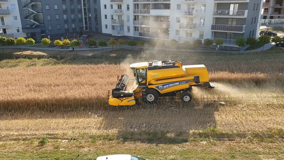 Kilka dni temu internet obiegły filmy mieszkańców osiedla przy ulicy Jantarowej w Lublinie, na których zarejestrowano żniwa. Nie byłoby w nich zupełnie nic dziwnego, gdyby nie fakt, że uprawiane pole, należące do rolnika, który nie chciał sprzedać swojej ziemi deweloperowi, znajduje się... pośrodku dużego blokowiska.