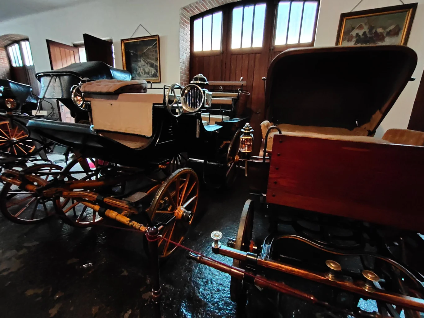 Pojazdy rodziny Potockich to egzemplarze luksusowe, pochodzące od najbardziej renomowanych producentów z Wiednia, Paryża, czy Londynu. Można podziwiać wozy takich marek jak Lohner, Labourdette, Marius i Rotchild. Osobno prezentowane są pojazdy gospodarcze i pomocnicze.