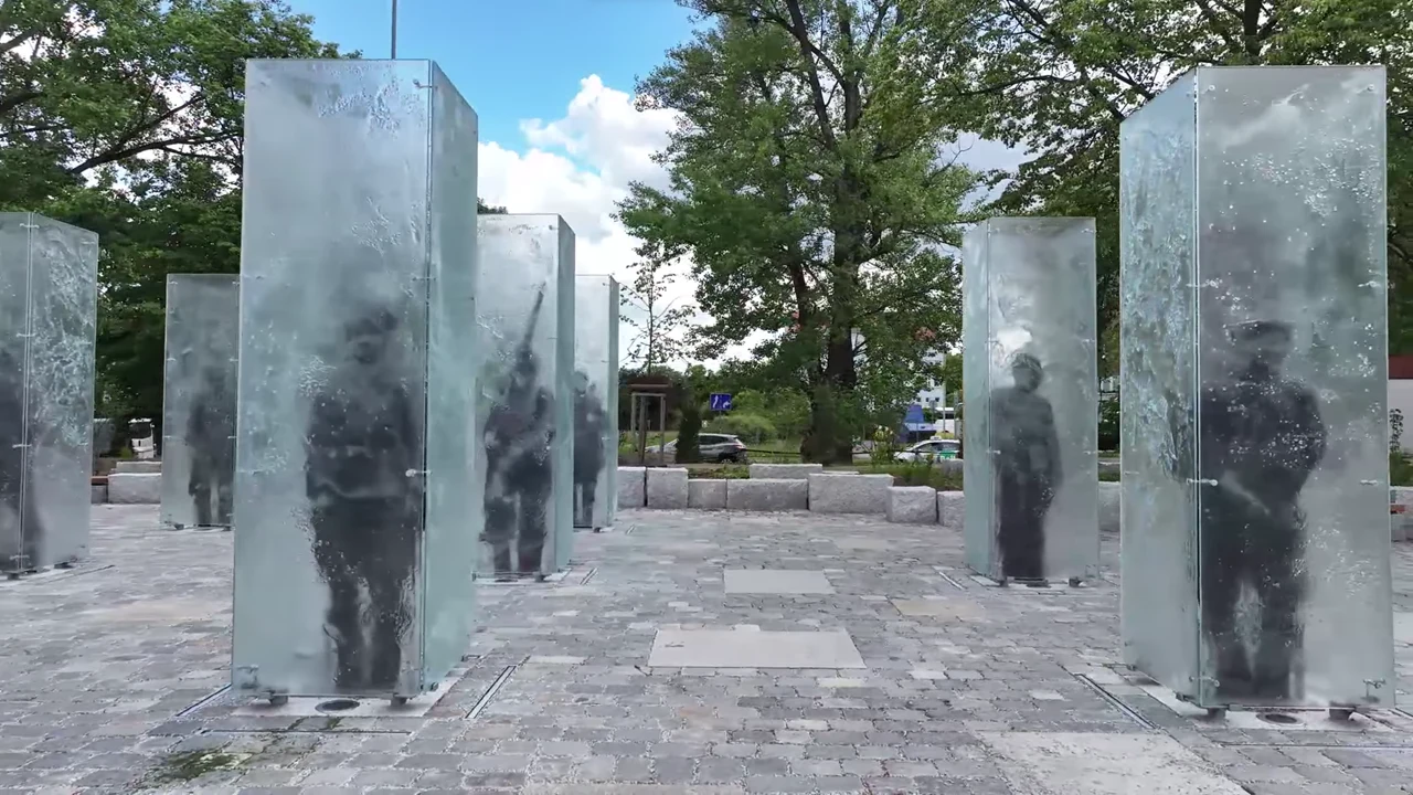 Monumentalne szklane rzeźby nawiązywać mają do starych zdjęć żołnierzy. Aby uzyskać zamierzony efekt ich sylwetki w skali 1:1 umieszczono w prostopadłościanach wykonanych ze szkła artystycznego, bezpiecznego, hartowanego, o piecowej autorskiej fakturze, jak informują twórcy na swojej stronie.