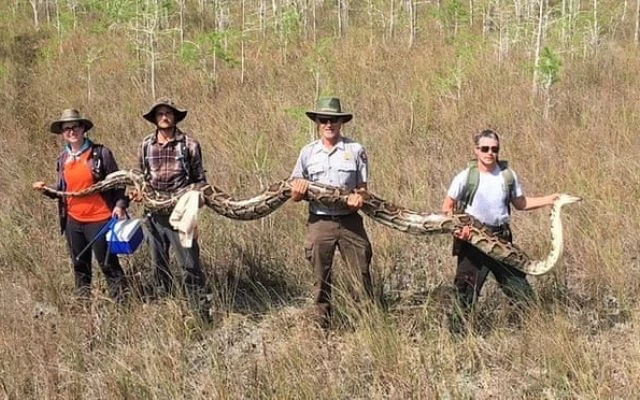 Poprzedni rekord należy do samicy schwytanej w Big Cypress w grudniu 2017 r. przez łowcę węży Jasona Leona. Eksterminacje pytonów są w dalszym ciągu przeprowadzane na bagnach Florydy. Rokrocznie zabijanych jest od kilkudziesięciu do kilkuset węży, które sieją spustoszenie w środowisku naturalnym. Plany ekologów zakładają całkowite wytępienie szkodliwego gatunku.