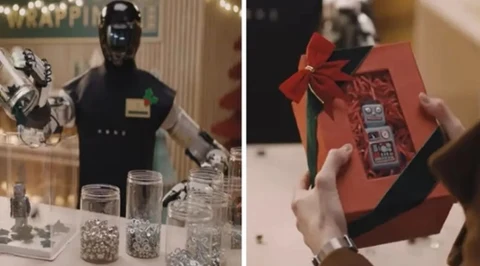 Humanoid odtwarza scenę pakowania prezentów z kultowej komedii