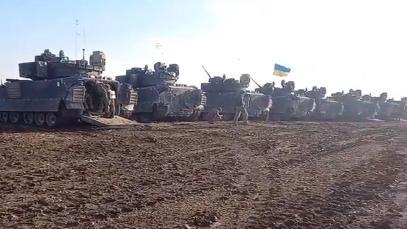 Kolumna bojowych Bradley w Ukrainie gotowa na wielką kontrofensywę