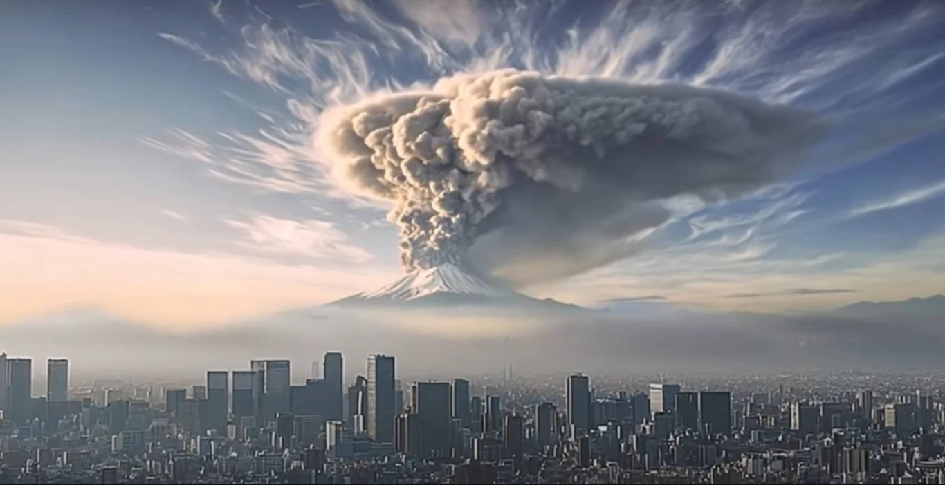 Nagranie przygotowane przez sztuczną inteligencję i opublikowane przez Wydział Zapobiegania Katastrofom Metropolitalnego Rządu Tokio ma to zmienić, pokazując, że moment katastrofy może nadejść bez żadnego ostrzeżenia, a popiół wulkaniczny dotrzeć do gęsto zaludnionego Tokio - zasłaniając słońce i pokrywając ulice, budynki oraz pojazdy - w zaledwie kilka godzin. Wideo ostrzega, że spowoduje to zagrożenia zdrowotne, przerwy w dostawach prądu, chaos w transporcie i problemy z dystrybucją żywności.