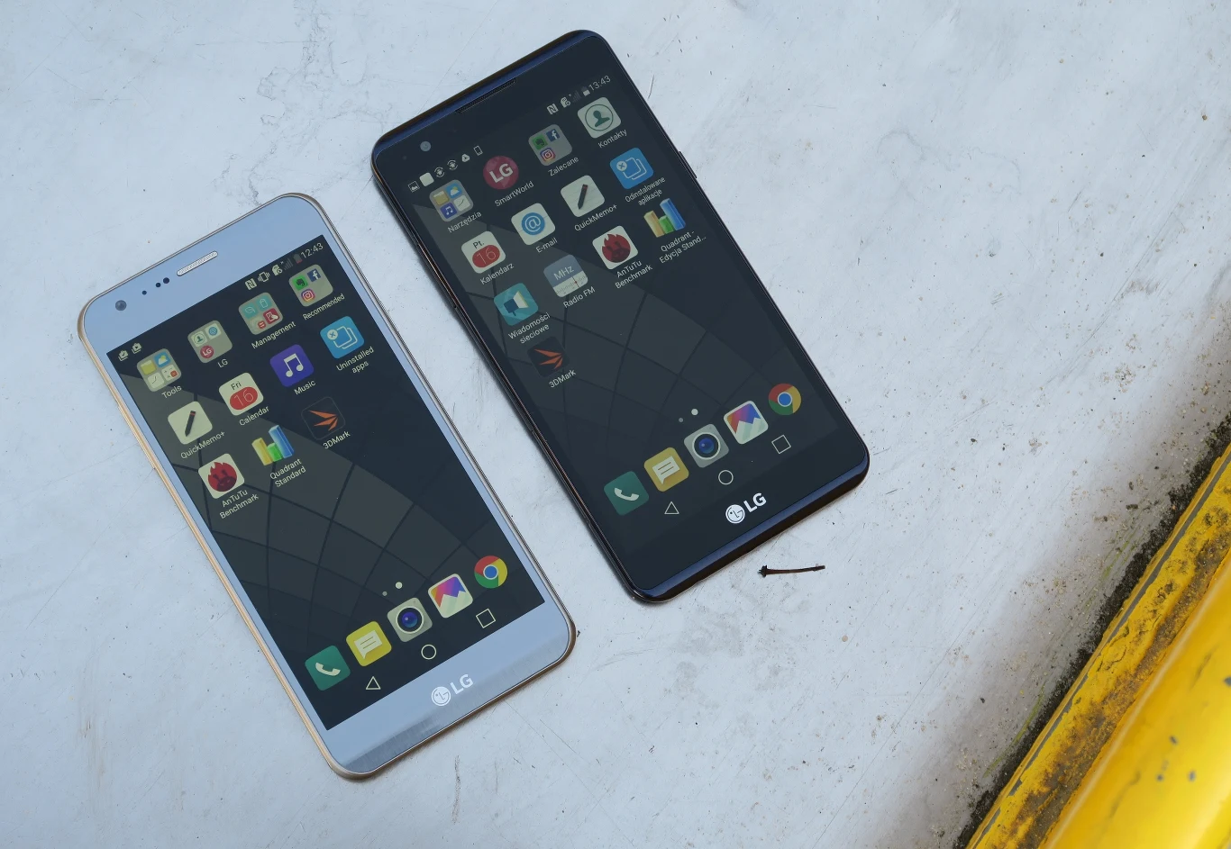 Wyświetlacze telefonów mają podobny rozmiar (5,2 cala X Cam i 5,3 cala X Power), ale znacząco różnią się jeśli chodzi o pozostałe aspekty. Przede wszystkim, model Cam ma rozdzielczość Full HD, a Power, mimo większej przekątnej, tylko HD. Różnicę w ostrości widać na pierwszy rzut oka, co jest solidnym argumentem przemawiającym za fotograficznym średniakiem od LG. Jeśli chodzi o odwzorowanie kolorów, Cam mocno przekłamuje barwy, czego ubocznym efektem jest nienaturalnie żółta biel. Power wypada pod tym względem lepiej, ale w nim z kolei widoczność słońcu jest dużo słabsza.